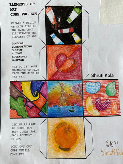 Students took theory and transformed it into practice with an interactive project—designing 3D art cubes to showcase their skills. Each cube became a personal canvas, representing the creativity, individuality, and imagination of the artist behind it.